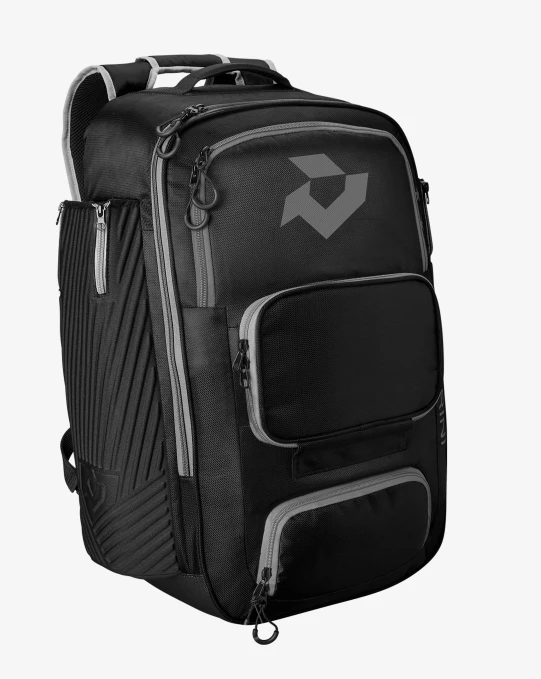 Built to carry your entire haul and then some. Introducing the DeMarini Spectre Backpack, the massive pack designed with an extra-large main compartment to stash several bats, multiple ball gloves and all the gear you need to stay sharp during weekend long tournaments. A reinforced interior shelf allows you to organize your most prized possessions, and the expandable neoprene bat sleeves hold up to four bats so you can keep your full arsenal close. A fleece-lined valuables pocket holds your phone and wallet within reach, and the padded shoulder straps keep you comfortable on your walk to and from the field. At game time, hang the Spectre backpack on the fence with the integrated hooks, then take out your tools and get to work.