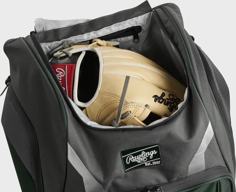 The Rawlings Legion backpack offers an innovative design and gives you tons of options to carry all of your gear. Its large, sturdy construction and meticulously planned compartments keep this bag the ideal size for up-and-coming players. It’s not too big to make it hard to use, but it’s not too small either! Its large main compartment actually converts into a game-time shelf for easy access to all your gear too. It was also created with a patent-pending bat sleeve storage system that effectively holds 3 bats, without being too cumbersome.