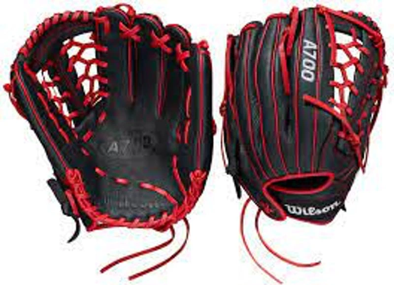 Chase down fly balls on the outfield grass with the A700® 12” Outfield Glove. Black and Red Full Grain leather with a Pro Laced T-Web is game ready on day one.